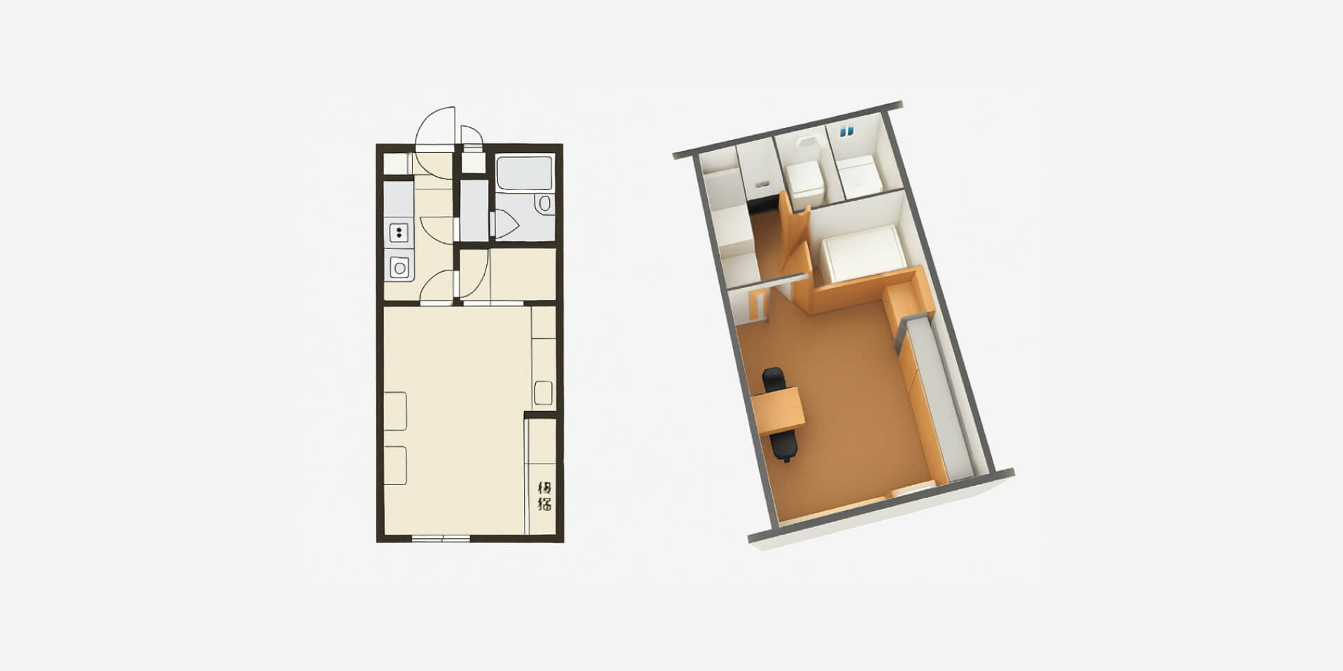 独身社員向けに、家具・家電つきの社宅をご用意。入社1年目の家賃は1万円~!